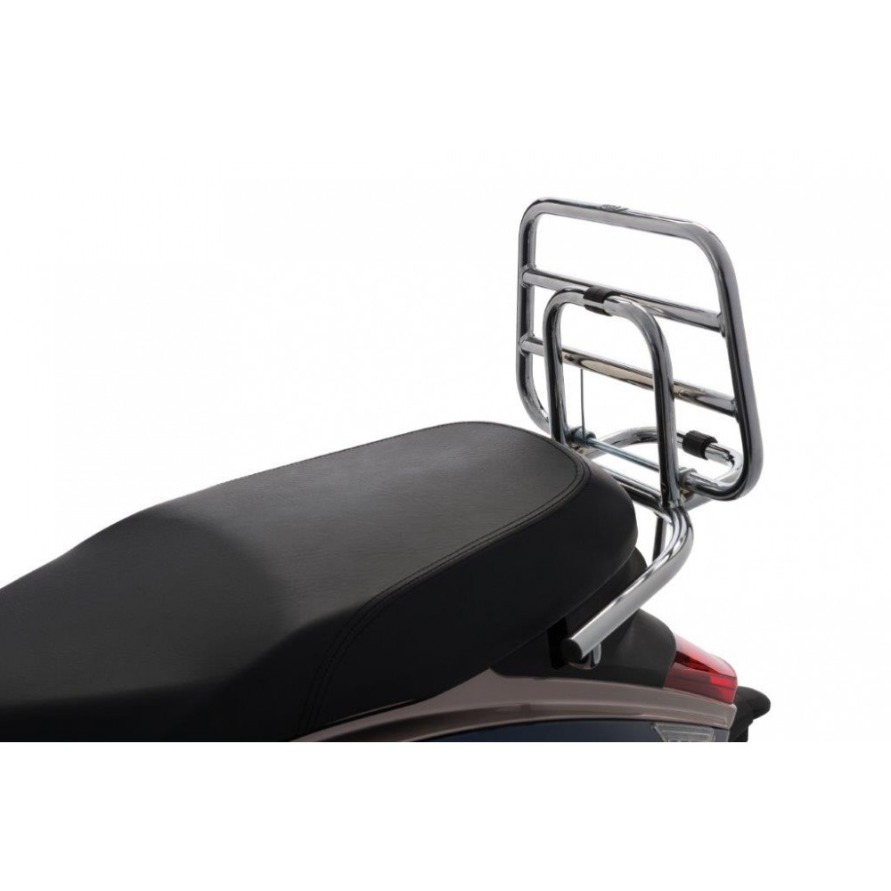 Porte-bagages arrietegrave;re chrometeacute; pliant pour le SYM Mio 50i et 115 etagrave; partir de 2017.